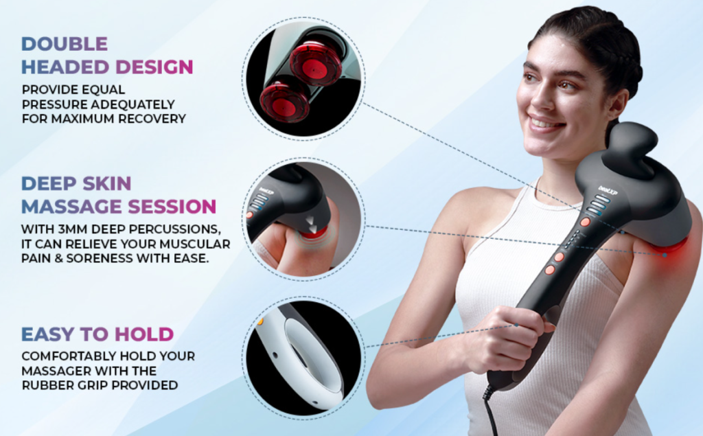 Features:Dual pivoting heads for comprehensive massage coverage.